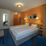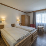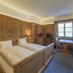 Gemütliches Arvenholz Doppelzimmer im Engadiner Stil gehalten mit Privatbad/Dusche, WC, Flachbildschirm-TV mit integriertem Radio, etc.. Sämtliche Zimmer sind ruhig gelegen und