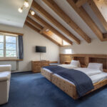 Gemütliches und geräumiges Arvenholz Doppelzimmer im Engadiner Stil gehalten mit Privatbad, WC, Flachbildschirm-TV mit integriertem Radio, etc. Sämtliche Zimmer sind ruhig gelegen und ca. 28 m2 gross. Ausgestattet mit allem, was man braucht; nicht mehr und nicht weniger.
